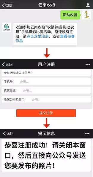 1、活動期間,參賽選手每天通過【云南農(nóng)擔】微信“影動農(nóng)擔”平臺投稿。