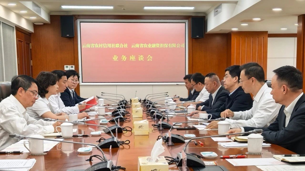 為持續(xù)深化銀擔(dān)合作機制,凝聚財政金融協(xié)同支農(nóng)合力,聚焦云南農(nóng)業(yè)領(lǐng)域,助力實現(xiàn)“3815”戰(zhàn)略發(fā)展目標(biāo),4月24日,云南省農(nóng)業(yè)融資擔(dān)保有限公司與云南省農(nóng)村信用社聯(lián)合社共同召開2025年度業(yè)務(wù)座談會。省聯(lián)社副主任納瑞華和云南農(nóng)擔(dān)公司董事長朱瑞東、總經(jīng)理李世偉出席會議。