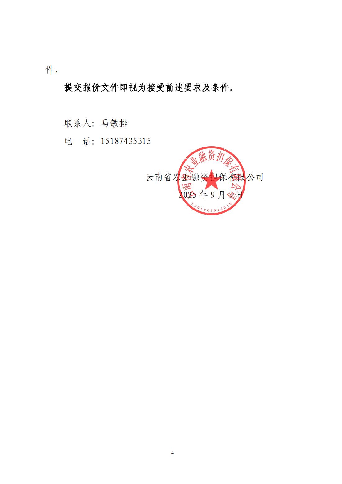 云南省農(nóng)業(yè)融資擔(dān)保有限公司詢價公告