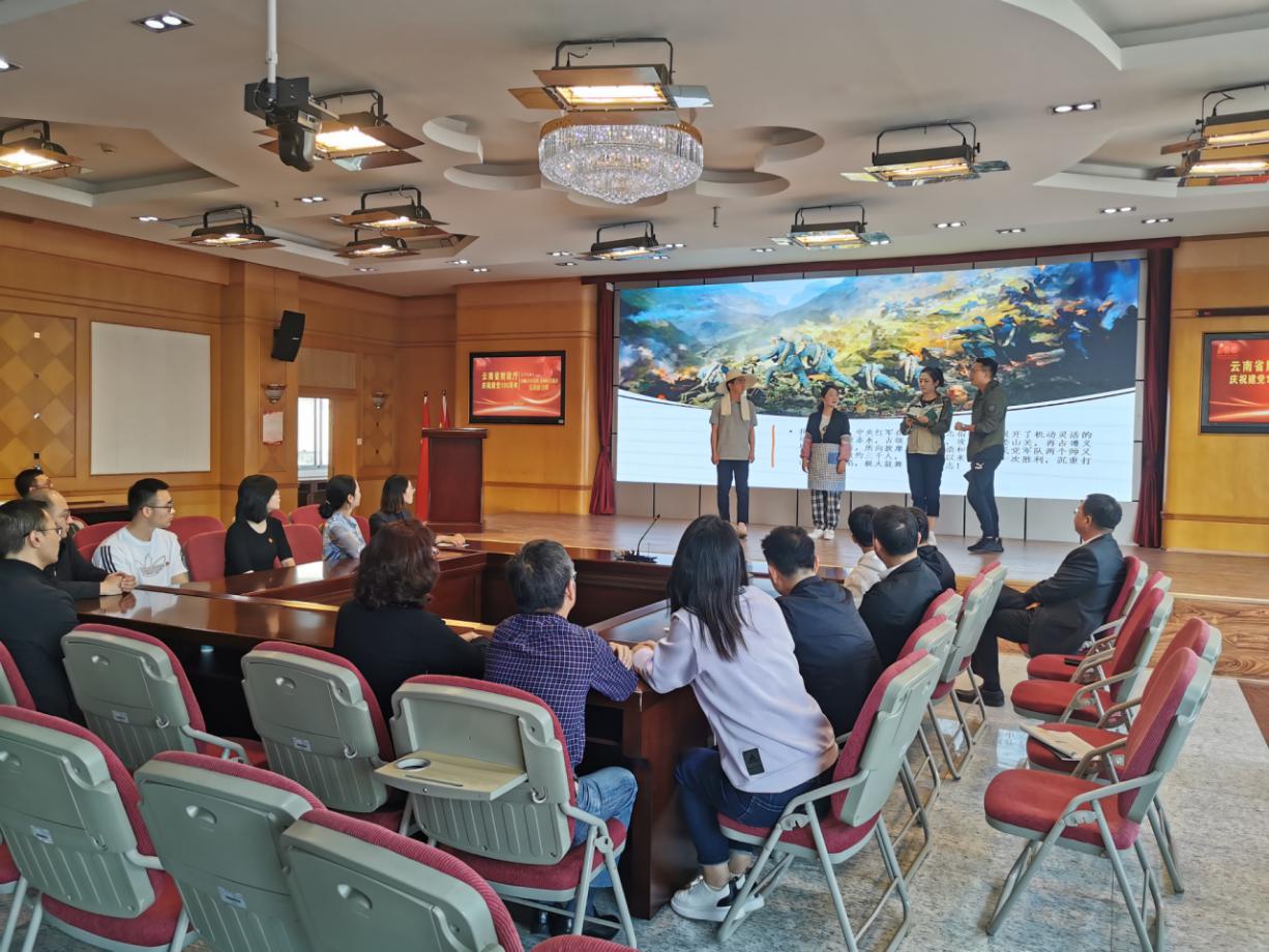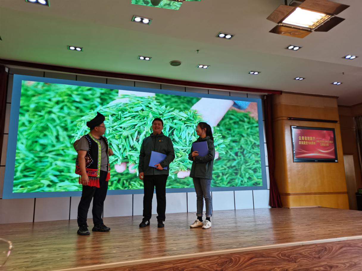 首場黨課接力賽共有4個黨支部組隊參加,公司黨總支作為最后一支參賽隊出場。公司黨總支參賽黨課結(jié)合農(nóng)擔業(yè)務實際,以“助農(nóng)路上感黨恩”為主題,通過情景劇方式,從業(yè)務工作場景契入,以時間為軸,由13名黨員職工分別演繹了扎西會議、云南第一個黨支部建立、紅軍過迪慶故事、阿佤人民唱新歌、共克貧困奔小康等5個故事,深情講述了云南黨史上廣為流傳的紅色故事、難忘的光輝時刻,以及黨的好政策。公司黨總支部副書記、董事長杜開波主持了講黨課活動。