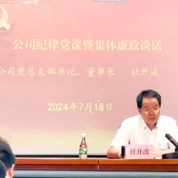 7月18日,公司以“現(xiàn)場+視頻”方式召開全體職工會(huì)議,公司黨總支部書記、董事長杜開波同志為全體職工講授黨紀(jì)學(xué)習(xí)教育紀(jì)律黨課并進(jìn)行集體廉政談話。